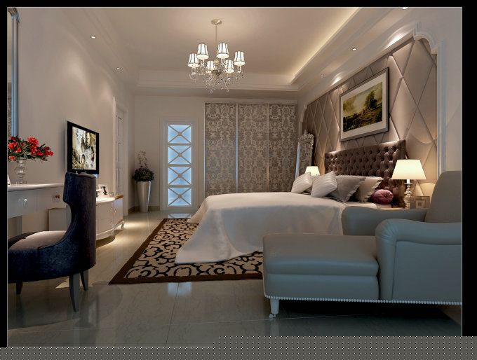 名门广场100平米二居室简欧风格装修效果图--卧室