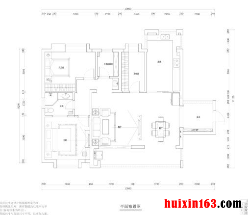 ![]() 名门广场100平米二居室简欧风格装修效果图--平面图