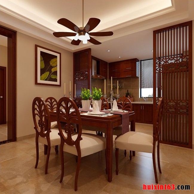 ![]() 港湾花园106平米三居室中式风格装修效果图--餐厅