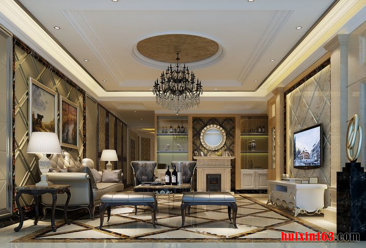 ![]() 滨江帝景145平米三居室新古典风格装修效果图--客厅