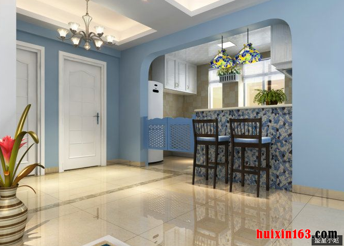 南国威尼斯项目位于海南省海口市,本案所示是一套80平米二居室地中海风格装修效果图,装修预算约为7万元人民币,工程类型为全包。此套设计风格理念定义为地中海风情,从直观效果可以很明显的看出,设计师将海洋元素充分运用到整体家居设计当中,给人以自然浪漫的感觉。在整体造型上,运用地中海特色的拱门或半拱门形状,延伸了视线,增加了透视感。在家具配置方面,通过擦漆做旧的处理方式,搭配贝壳等相关配饰等,表现出自然清新的海岸生活理念和氛围。色彩布局方面,以海蓝色、白色、黄色为主色调,看起来更加明亮和悦目。建材质地方面使用了原木以及天然的石材的相关内容,配合适的造型和设计,总体表现优雅从容、自然和谐。